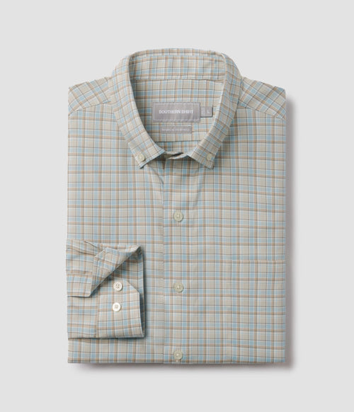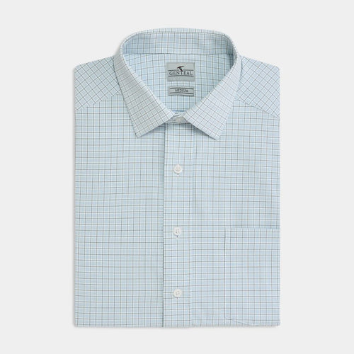 Performance Poplin Sport Shirt Fallon Plaid Teal Blue