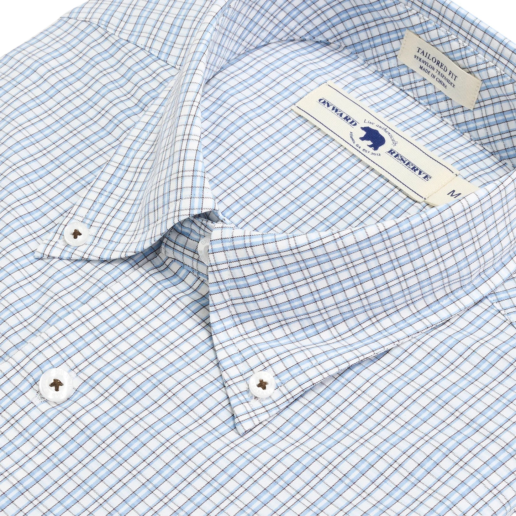 Our tailored fit performance button-down is a great everyday shirt to wear throughout the day at work to a nice evening out with the family. This button-down is great for staying cool and comfortable with its lightweight fabric that has added stretch as well.
